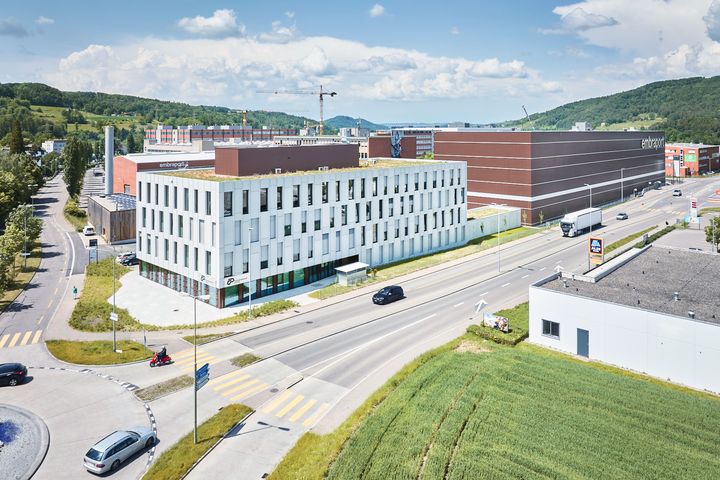 Die beiden Gebäude wurden mit dem Minergie-Eco und DGNB Gold zertifiziert und beziehen ihre Heiz- und Kühlenergie aus dem Grundwasserstrom des Embrachertals.
