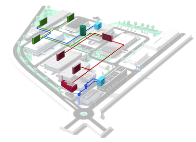 Bis Ende 2025 wird die bisherige, fossile Wärmeproduktion für Heizung und Warmwasser vollständig durch moderne, nachhaltige Systeme ersetzt. Die verbleibende erdölbetriebenen Anlage wird zurückgebaut. Künftig erfolgt die Energieversorgung über ein Hochtemperatur- sowie ein Mitteltemperaturnetz, gespeist aus natürlichen, erneuerbaren Quellen.